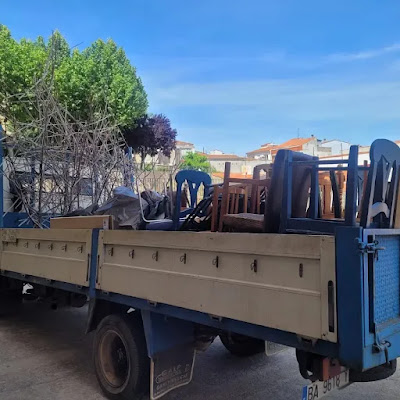Performance en la Plaza Mayor a partir de un montón de sillas viejas y libros viejos. Esta actividad está incluida en el programa de la Feria del Libro que se celebra esos días en la Plaza.